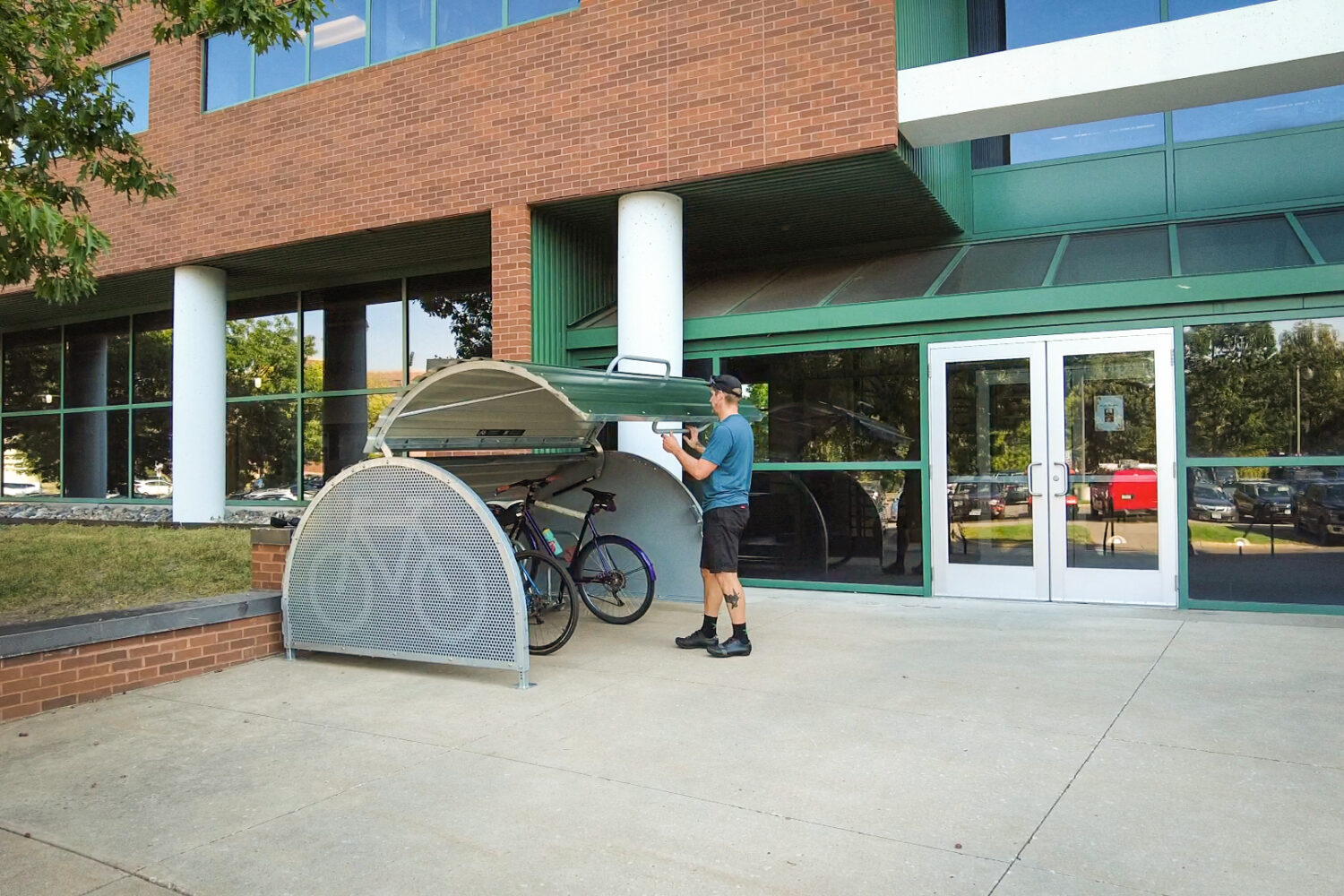 Customization and branding can be applied to the Bikehangar